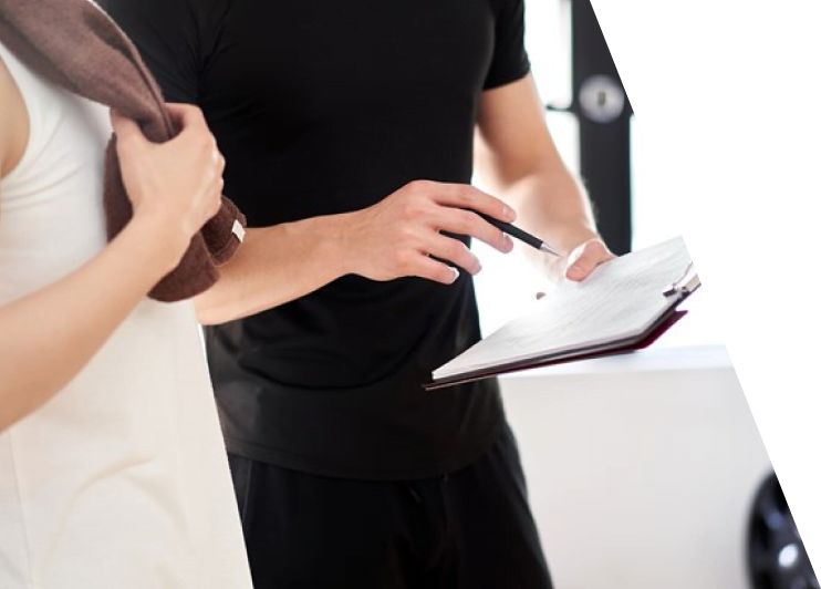 カウンセリング、アライメントチェック、体組成測定終了後、お客様の目的に応じたトレーニング指導を行います。
